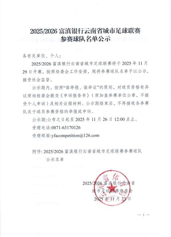 附件:2025/2026云南省城市足球联赛参赛球队公示名单.pdf