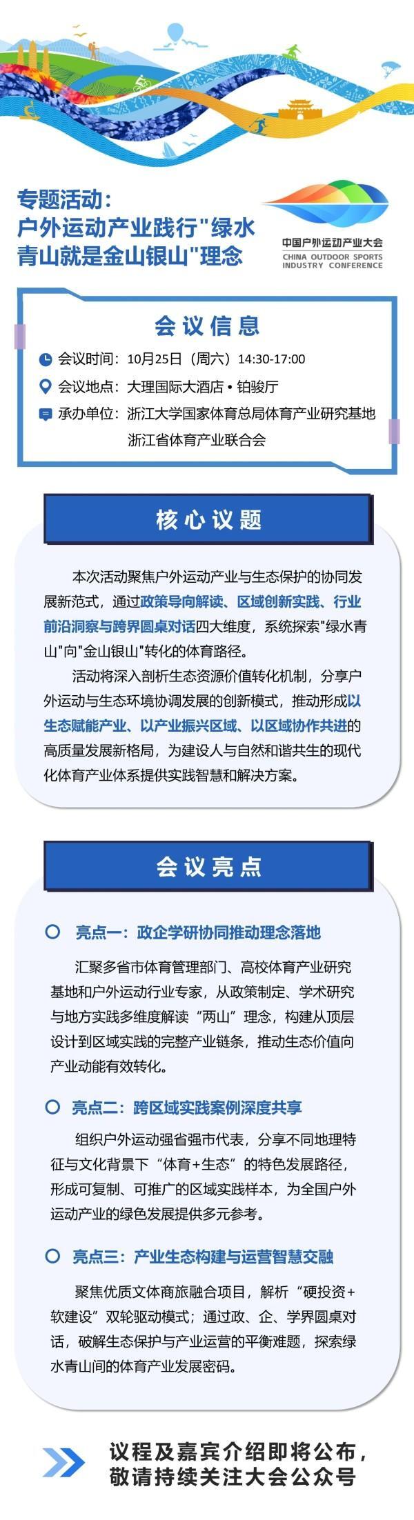 户外运动产业践行“绿水青山就是金山银山理念”专题活动亮点抢先看