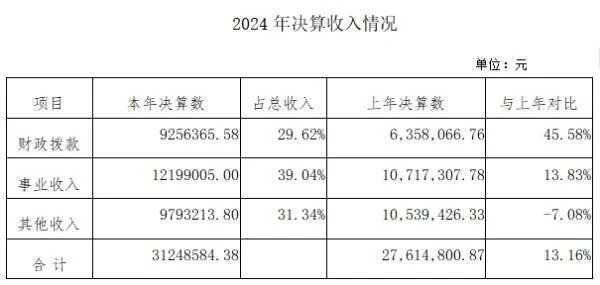与上年相比,收入合计增加3633783.51元,增长13.16%。其中:财政拨款收入增加2898298.82元,增长45.58%;上级补助收入0.00元,较上年无变化;事业收入增加1481697.22元,增长13.83%;无经营收入;无附属单位上缴收入;其他收入减少746212.53元,下降7.08%。主要原因是财政拨款专项资金较上年减少了大型场馆免费低收费开放专项资金、大幅增加了体育彩票公益金的拨款、增加体电所改制前离退休人员经费;本年度场馆运营情况良好,场馆运营事业收入较上年大幅度增加,由于2025年两场一馆需要提升改造,2024年底国有资产出租逐步终止合同,部分租户退租,收到抚恤金较上年减少,故场馆收入较上年大幅度增加,国有资产出租收入较上年减少,其他收入较上年减少。故总体收入较上年增加。