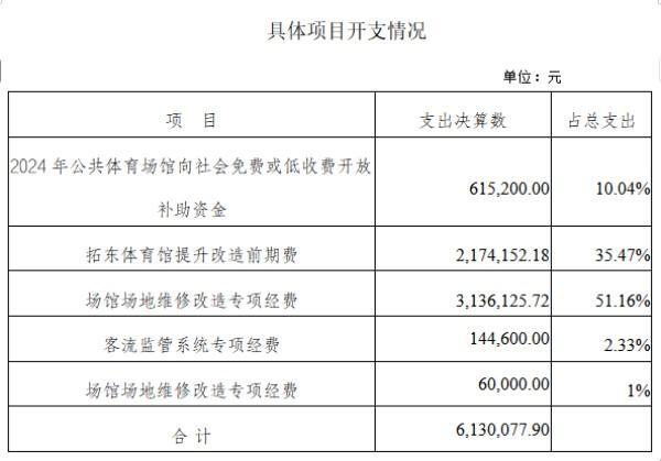 2024年公共体育场馆向社会免费或低收费开放补助资金项目经费615200元,主要用于场馆运营、设备更新、能源消耗等方面。