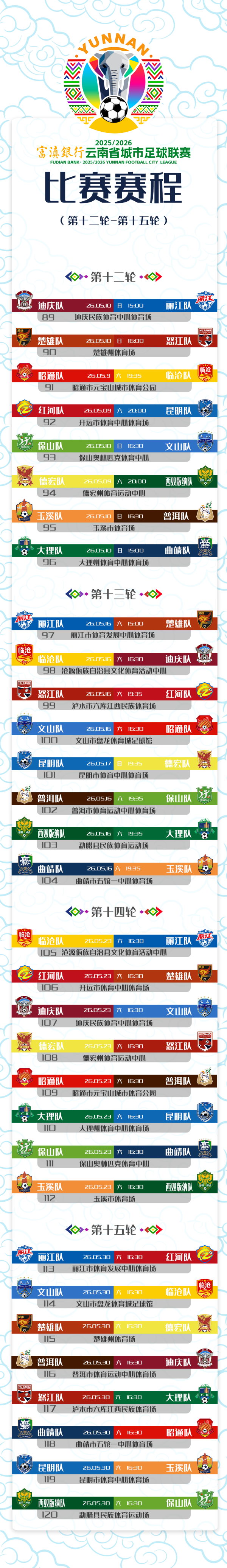 2025/2026富滇银行云南省城市足球联赛赛程(第十二轮至第十五轮)